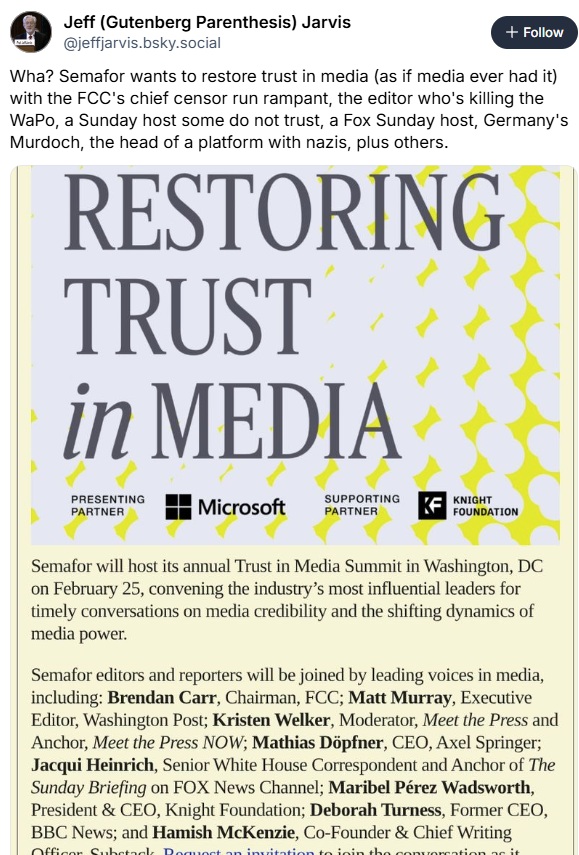 There are a number of reasons why Netflix didn't want the WBD linear channels and CNN is a primary one. It just complicates matters and it's a subject that matters a lot to Trump. I think it depends on who ends up acquiring that spin-off division. If it's PSKY, it's likely to push the network strongly to the right. As for bidders, I don't know of any logical buyers for the entire spin-off division. A couple of people have made offers for just CNN, but so far, WBD has consistently refused to discuss the idea.